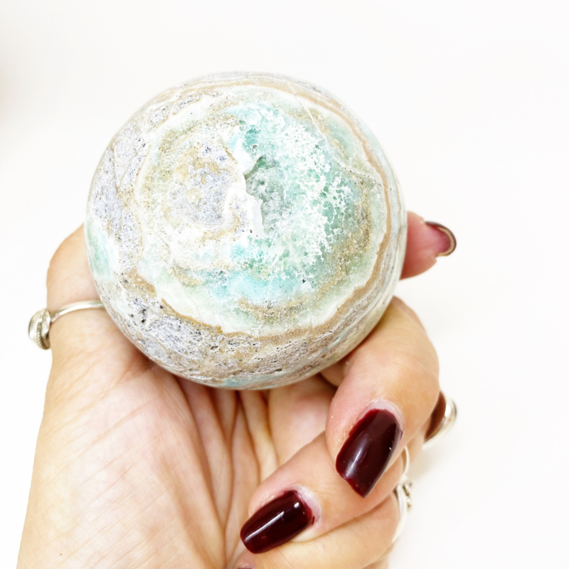 Altijd als ik deze edelsteen zie moet ik aan een mooi tropisch strand denken. Niet verwondelijk dan ook dat deze steen kalmerend en rustgevend werkt.