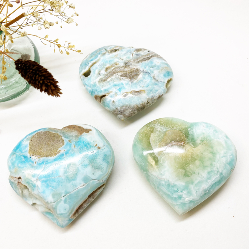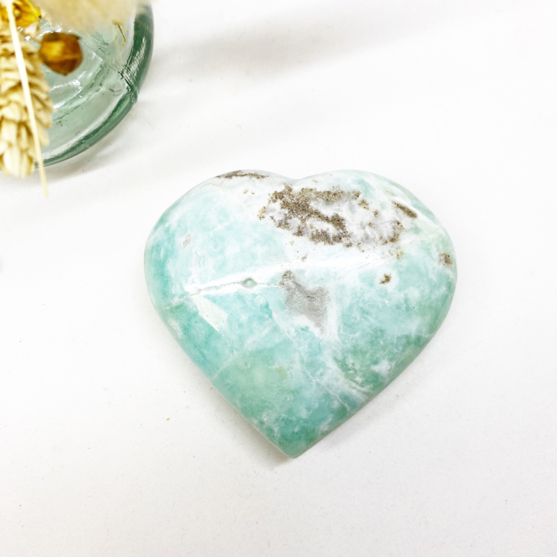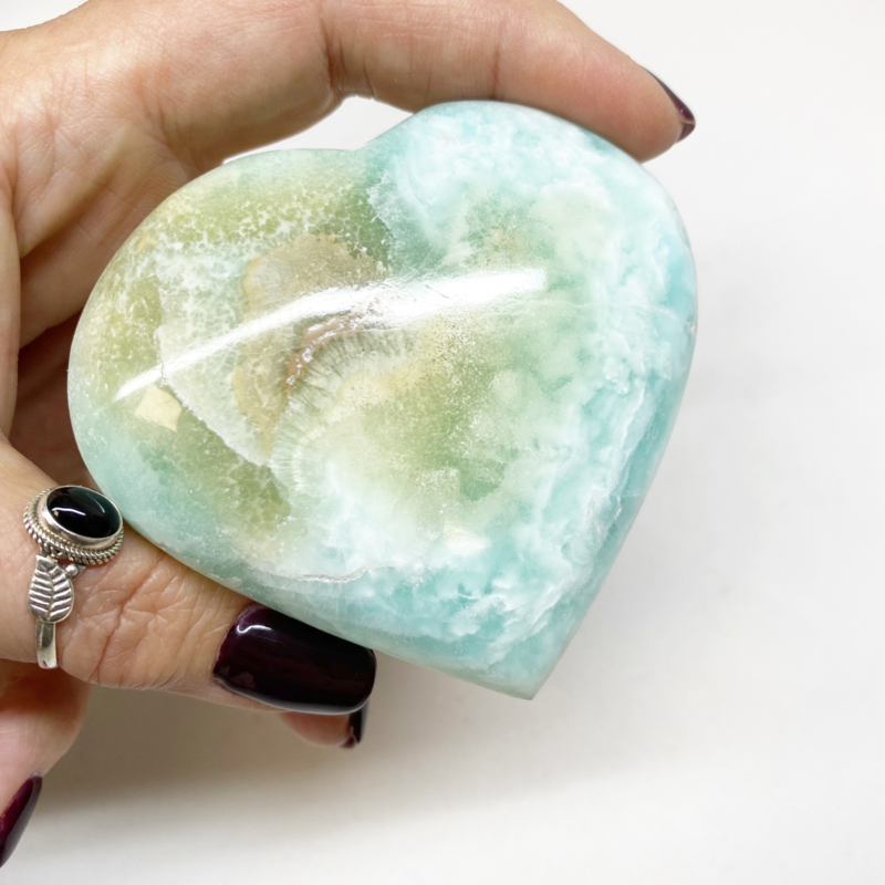 Dit prachtige hart doet je denken aan een mooi tropisch strand. En net als het strand werkt deze steen kalmerend en rustgevend zijn werk met fijne energie.