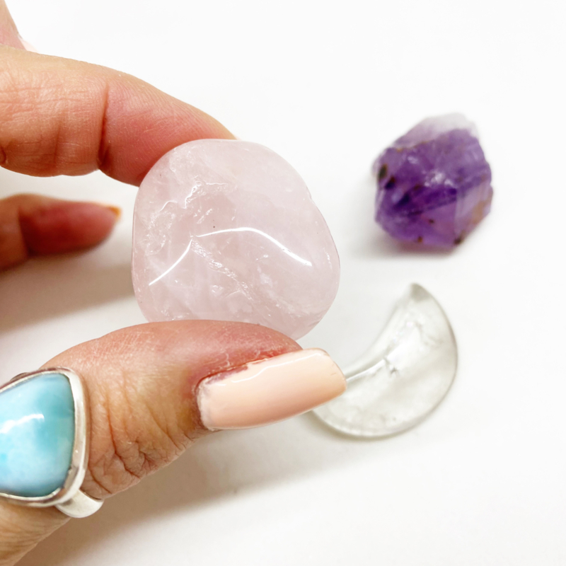 Rozenkwarts knuffelsteentje = 9gr. 3,4x2x1cm