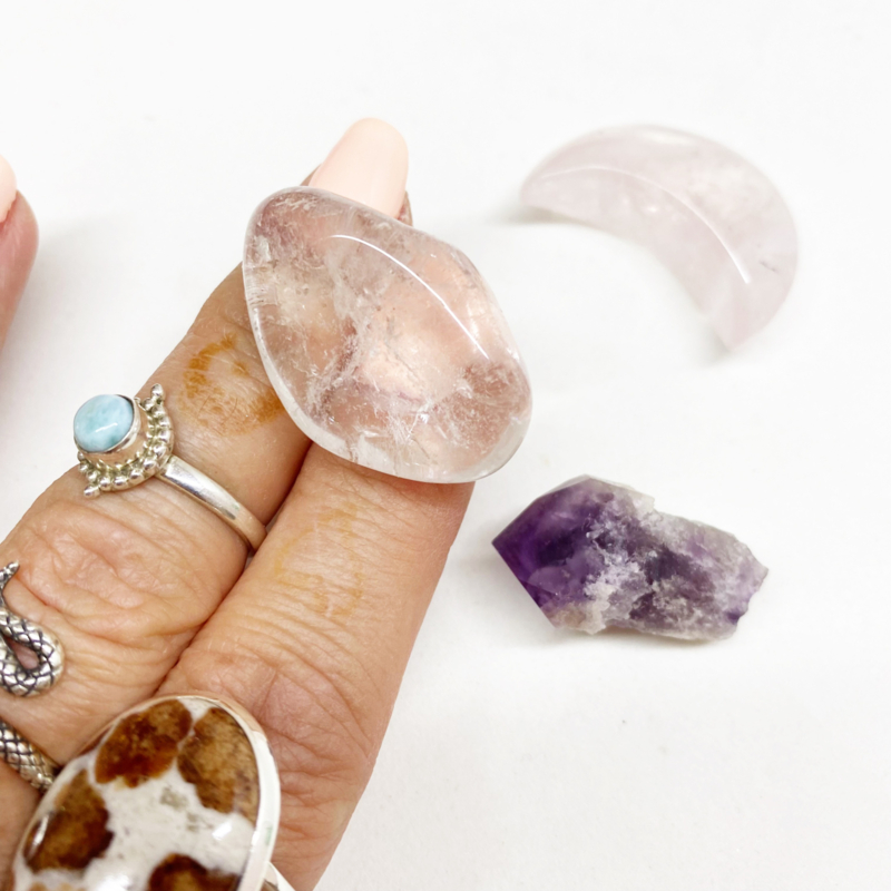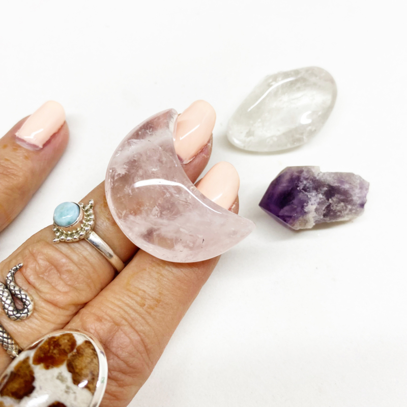 Rozenkwarts maantje = 12gr. 3,5x2,5x1,2cm