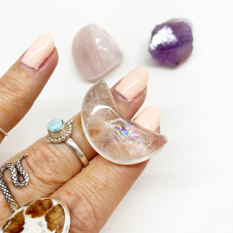 Bergkristal maantje = 27gr. 3x3,2x2,2cm
