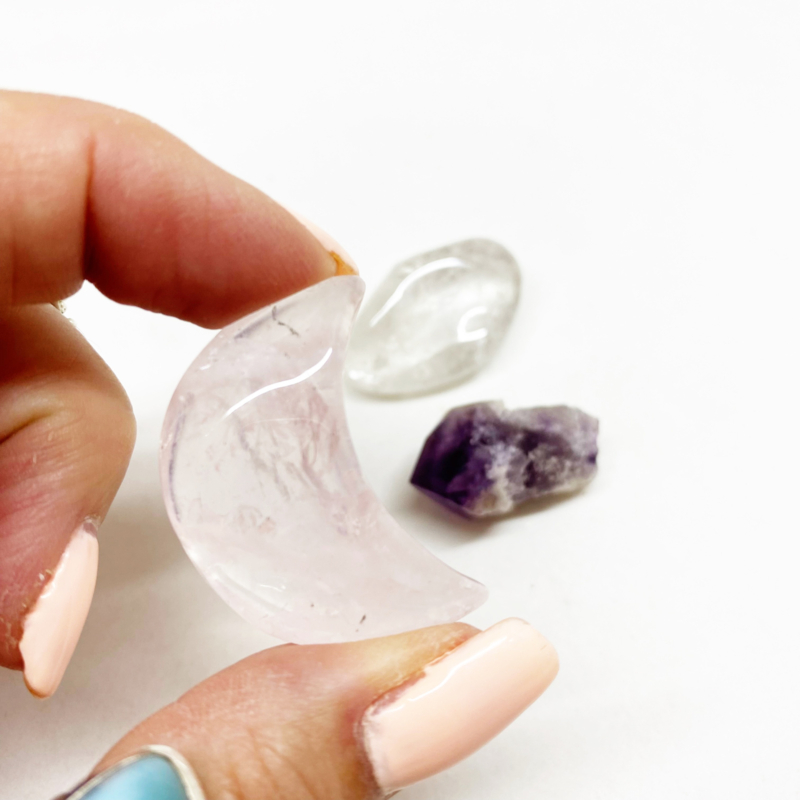 Rozenkwarts maantje = 12gr. 3,5x2,5x1,2cm