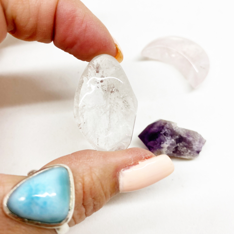 Bergkristal knuffelsteenje = 14gr. 3,4x2,2x1,4cm