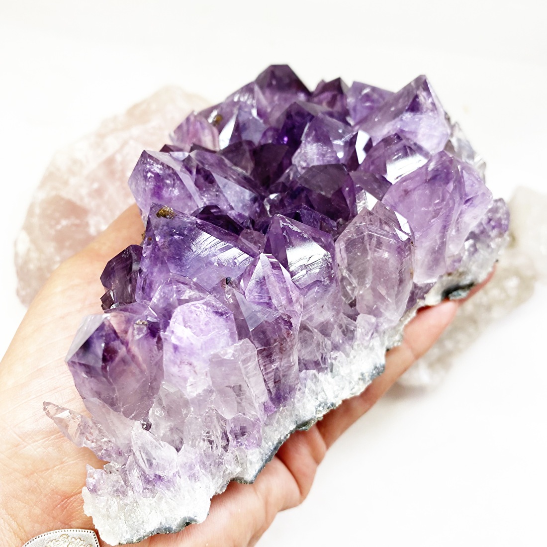 Amethist werkt als een magneet op negatieve energie en haalt stress uit de ruimte en geeft er een vrij neutrale energie voor terug.